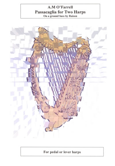 This original piece is recorded on the CD Double Strung by Anne-Marie O'Farrell & Cormac De Barra and was inspired by Bach's treatment of a ground bass by Raison in his own distinctive Passacaglia in C minor BWV 582 for organ. Lever changes are denoted by a stemless notehead with an accidental while pedal changes are noted in the normal manner.